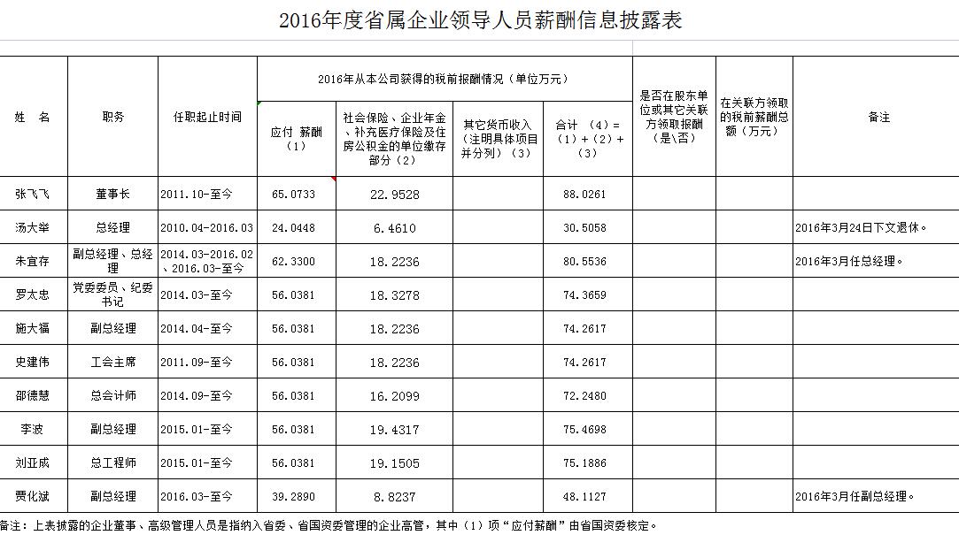 2016年度省属企业向导职员薪酬信息披露表